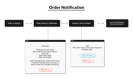 A Bangalore based company understood the need of sending regular updates for all orders placed via their Shopify website. The company wanted to automate the process of sending order details in the form of WhatsApp message notifications to their customers, right from when the order is placed successfully to the delivery.