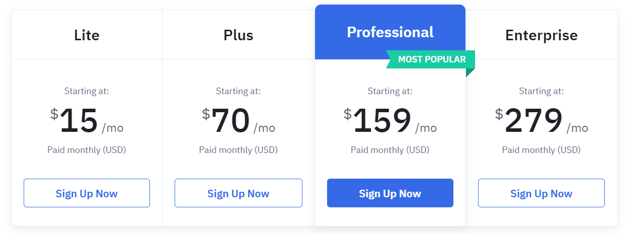 ActiveCampaign has four pricing options, the cheapest of which is Lite i.e. $15/month. Email marketing and marketing automation are included in the starter plan. The ActiveCampaign CRM, landing pages, and lead scoring are all included in higher plans.